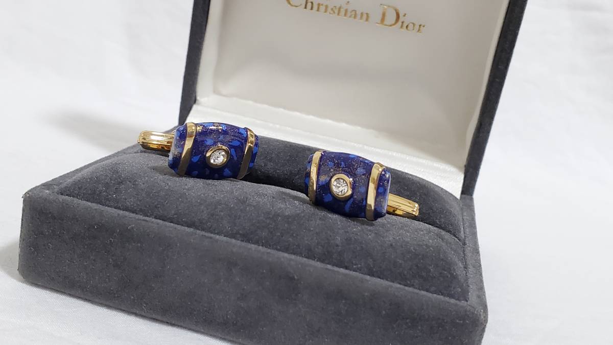 - 正規美 限定 ディオールDior ヴィンテージ ジュエリー装飾カフス 金×青×石 ラピスブルー ラメ カフリンクスボタン ギャラクシー 付属有