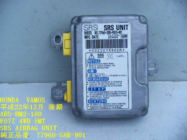 > ◆HM2 HM1 ホンダ バモス H22年 後期 エアバックコンピューター エアバッグ SRSユニット 77960-S8R-901 純正 中古 即決 [12122]