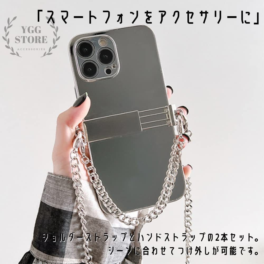 - YGG★スマホショルダー ストラップ ホルダー メタル 喜平 チェーン ネックストラップ ハンドストラップ 2WAY 肩がけ 斜めがけ シルバー 銀
