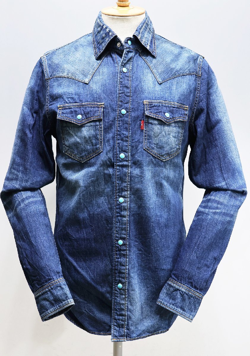 - Marbles (マーブルズ) Star Border Denim Western Shirt / スターボーダー デニムウエスタンシャツ MSH-S1606 美品 size L