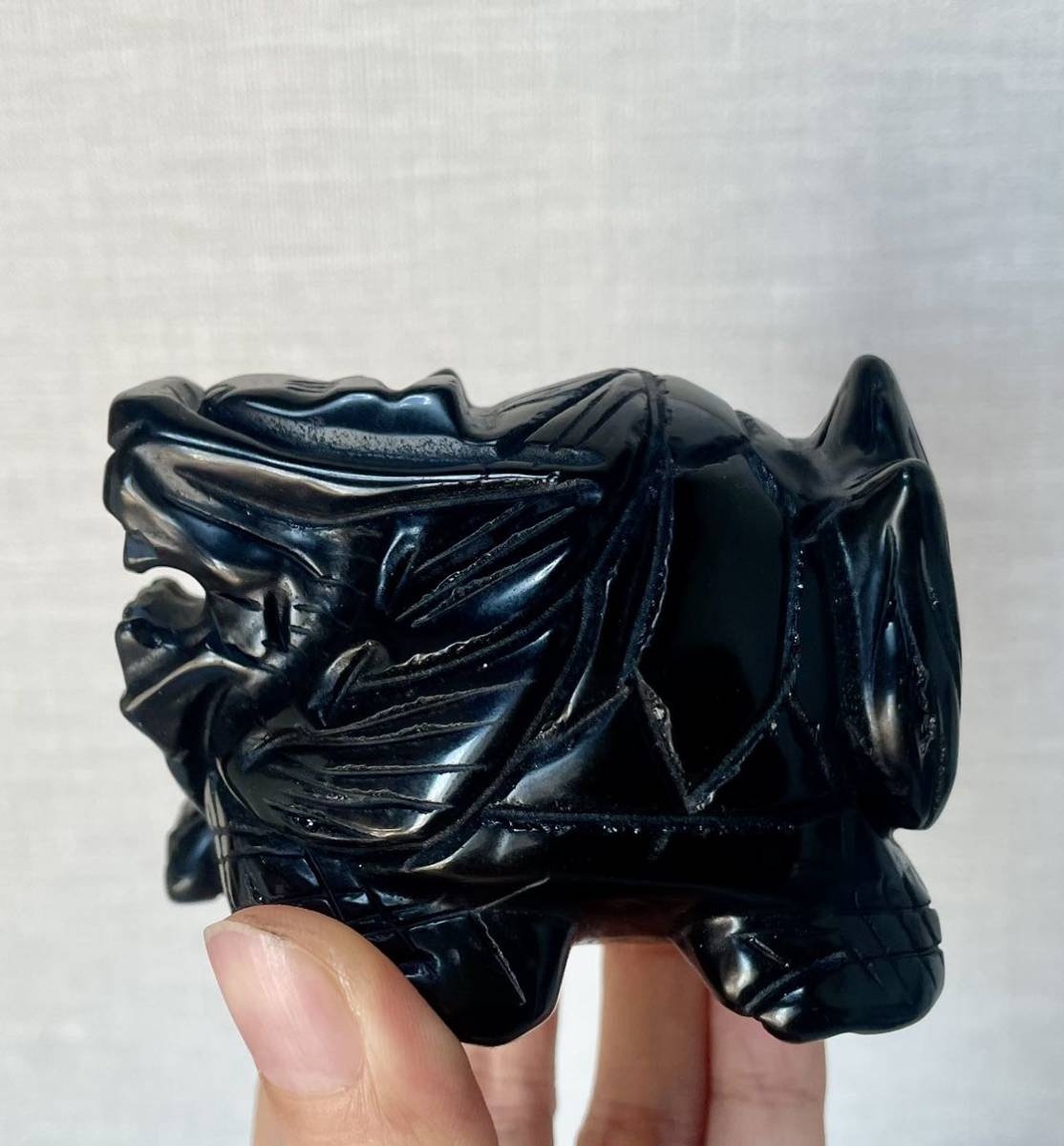 - オブシディアン ロングィ 龍亀 ペア 天然石置物 魔除 お守 浄化 幸運 ラッキー 黒曜石 インテリア 2点セット ブラック 彫刻
