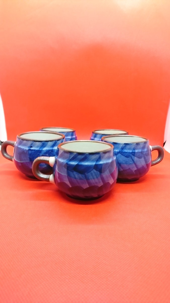 - noritaka anteique stone 5客 ノリタケ マグカップ 磁器 コーヒー 紅茶 青色 スープカップ 食器 食卓 カップ メーカーブランド