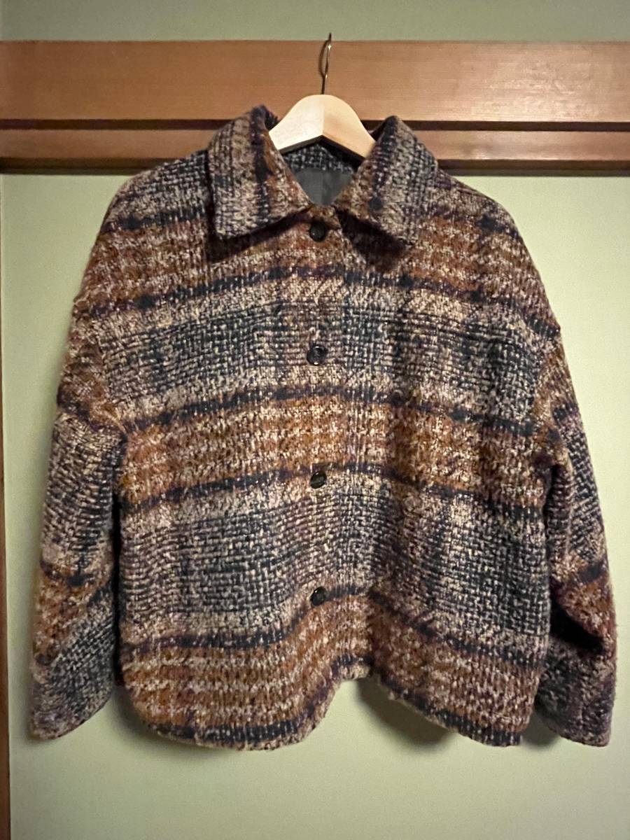 > Mサイズ ショート丈 コート チェック柄 オレンジ ブラウン 茶色 グリーン 可愛い おしゃれ 上着 秋 冬 ボタンコート terawear emu