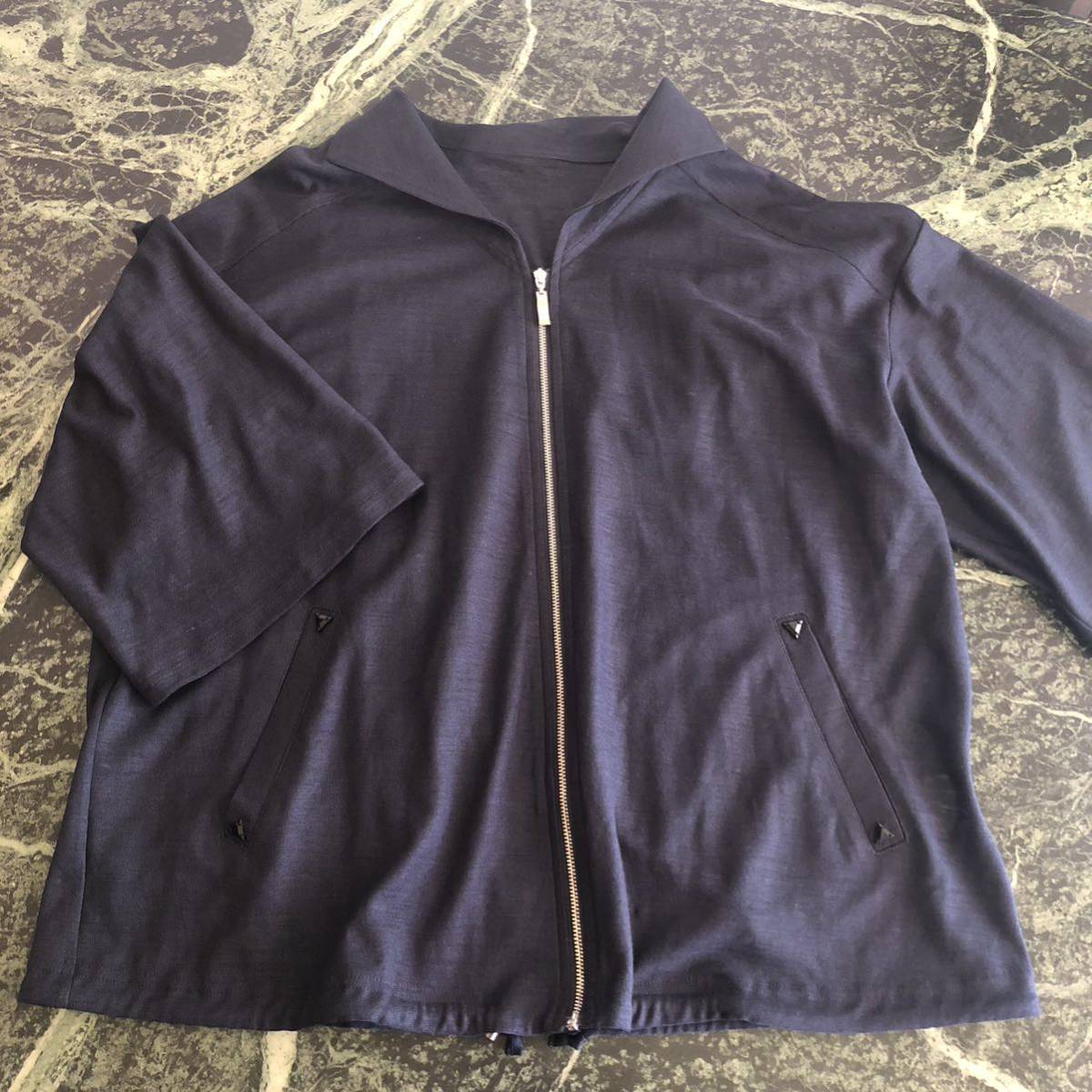 - 【美品】KAZUMI★カズミ ジップアップジャケット 38サイズ Mサイズ相当 ネイビー 紺色 薄手 半袖 透け感 ラミー100% アトリエドール