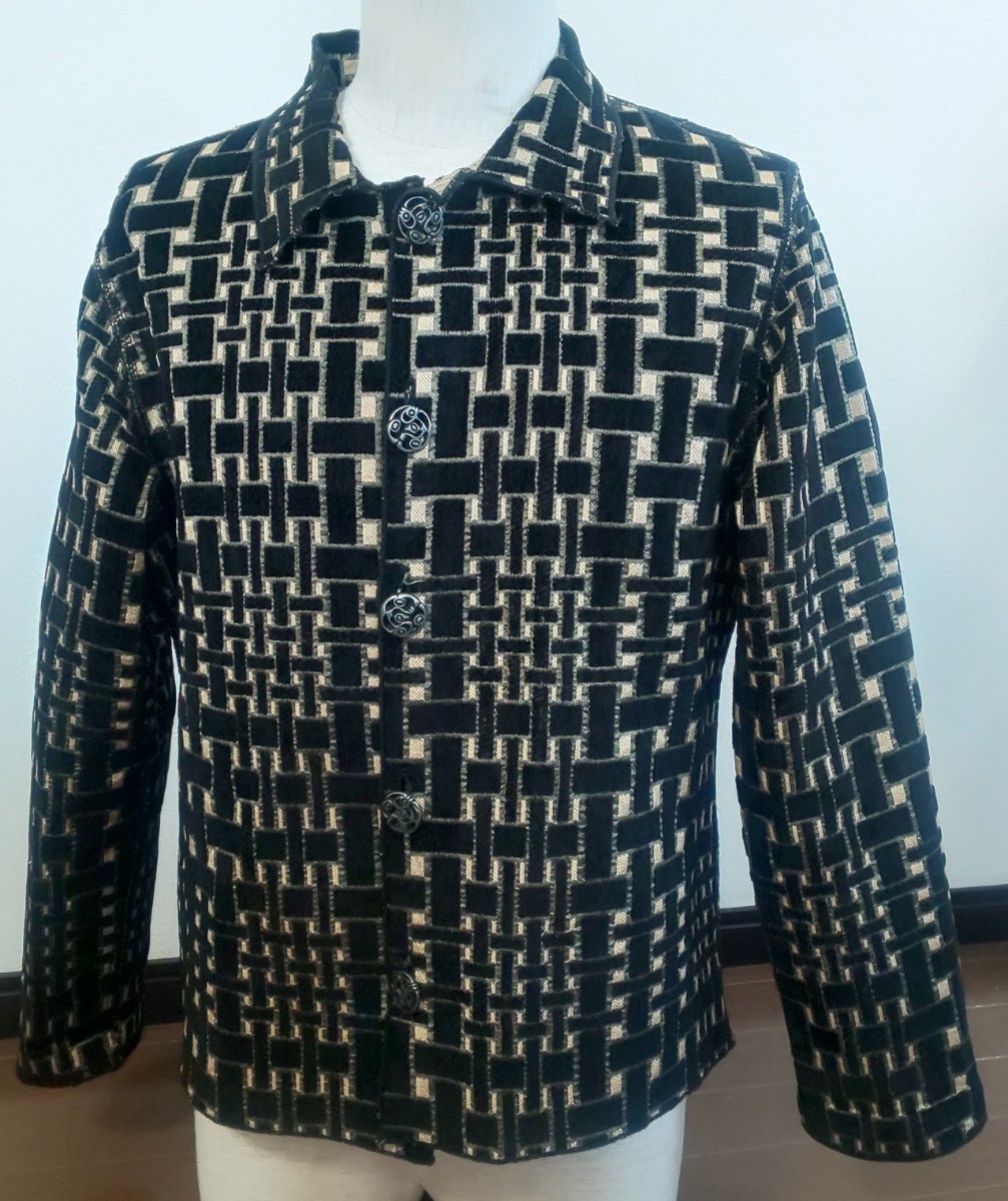 > 古着 ノーブランド ヴィンテージジャケット リバーシブル コーデュロイ 格子戸柄 ブラック/ブラウン系 大きめボタン デザイン柄 下北系