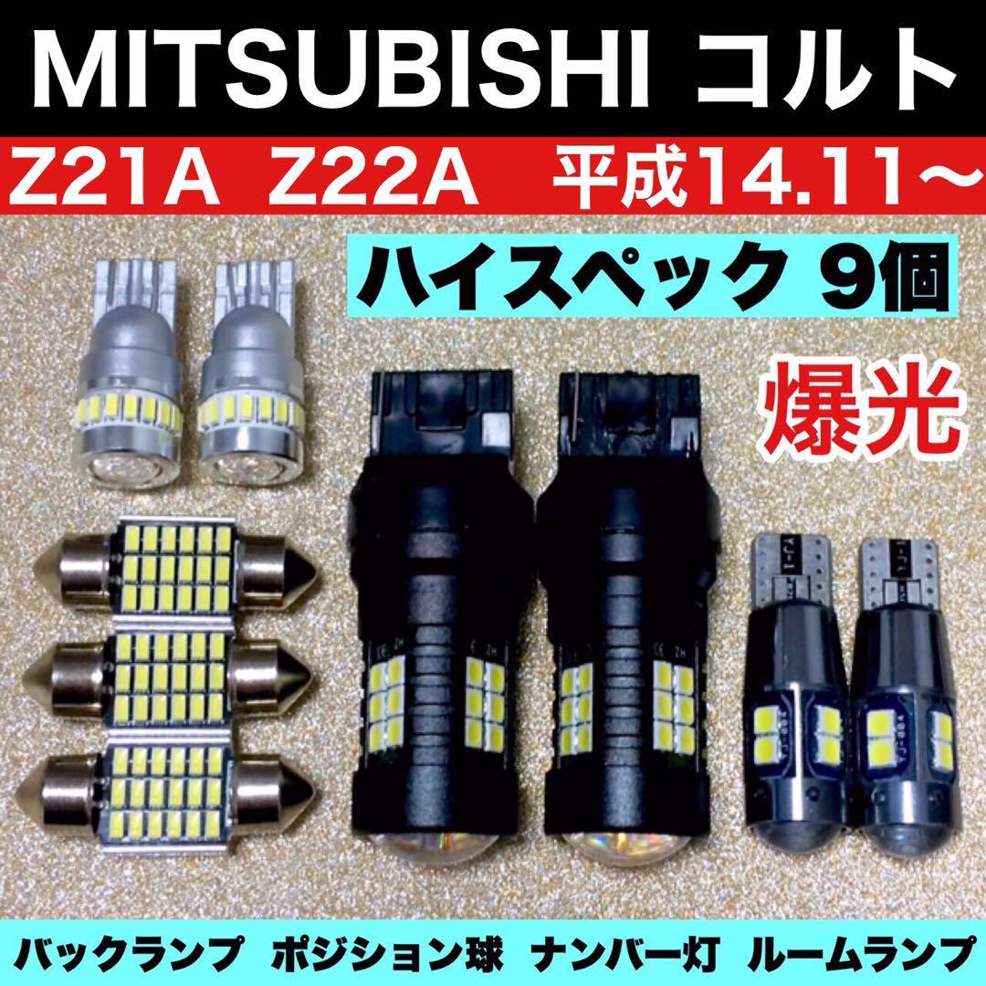 - 三菱 コルト Z21A Z22A ルームランプ バックランプ ポジション球 ナンバー灯 純正球交換用 ウエッジ球 T10 LED 爆光 ホワイト 9個セット