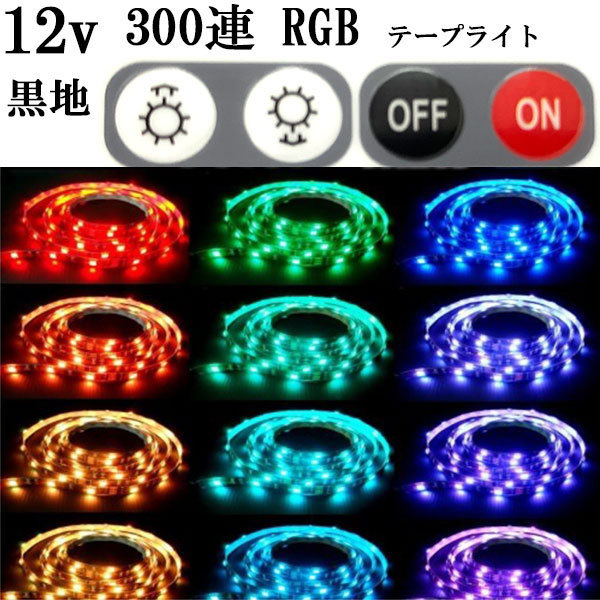- LEDテープライト 300連 12v 防水 5m RGB 16色発光 黒ベース 送料無料