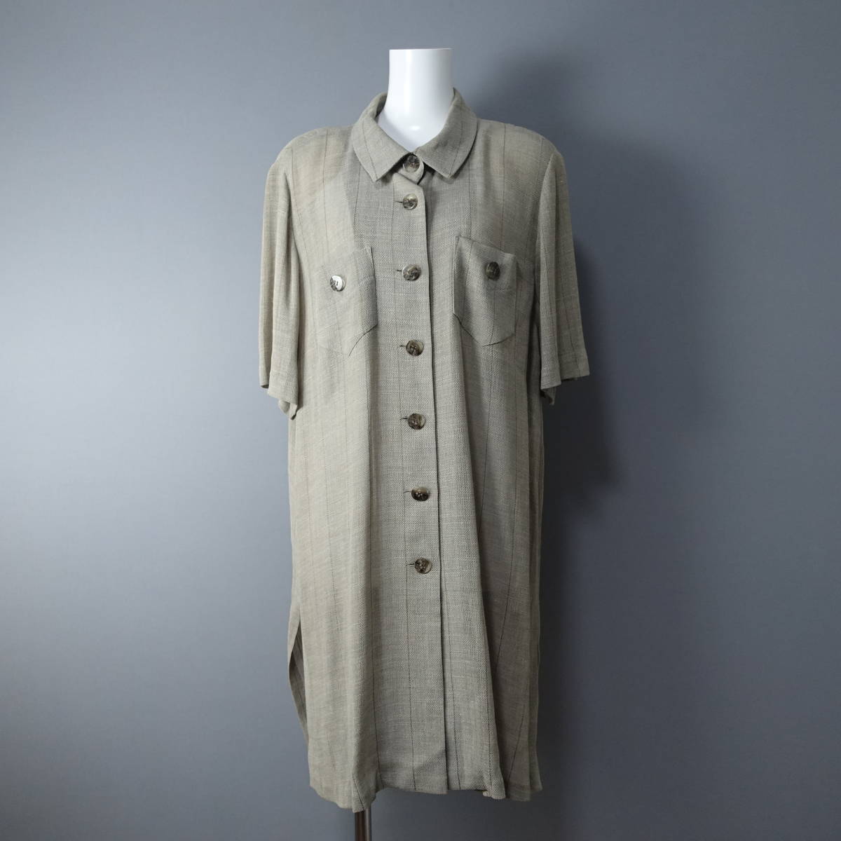 - Leilian/レリアン/13+/肩パッド付(取り外し可能)/日本製/リネン混シャツ/グレー系/レディース/ブラウス