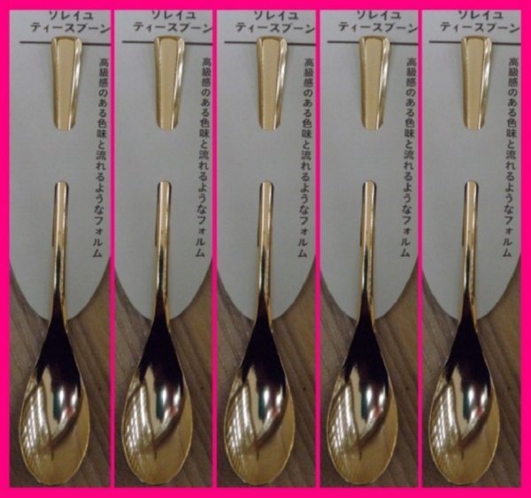 - 【送料無料:5本】★ティー スプーン:日本製:ゴールド:高級感のある色味と流れるようなフォルム★金 金色 カトラリー 洋食 食器 ステンレス