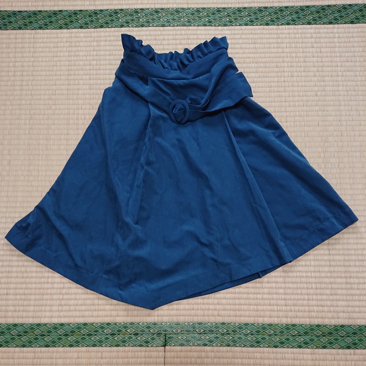 - 【ワンコイン古着】サイズM グリーンのひざ丈スカート フレアースカート