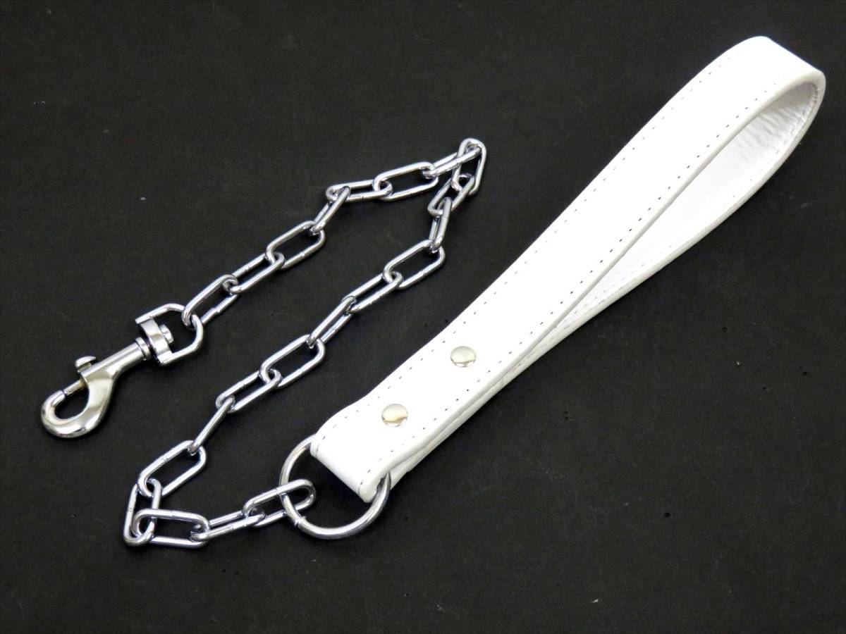 - 白 犬用 チェーンリード 全長 65cm 持ち手幅 2.5cm チェーン幅 1cm PUレザー チェーン部 鉄 ホワイト ペット用品 散歩 新品 送料無料