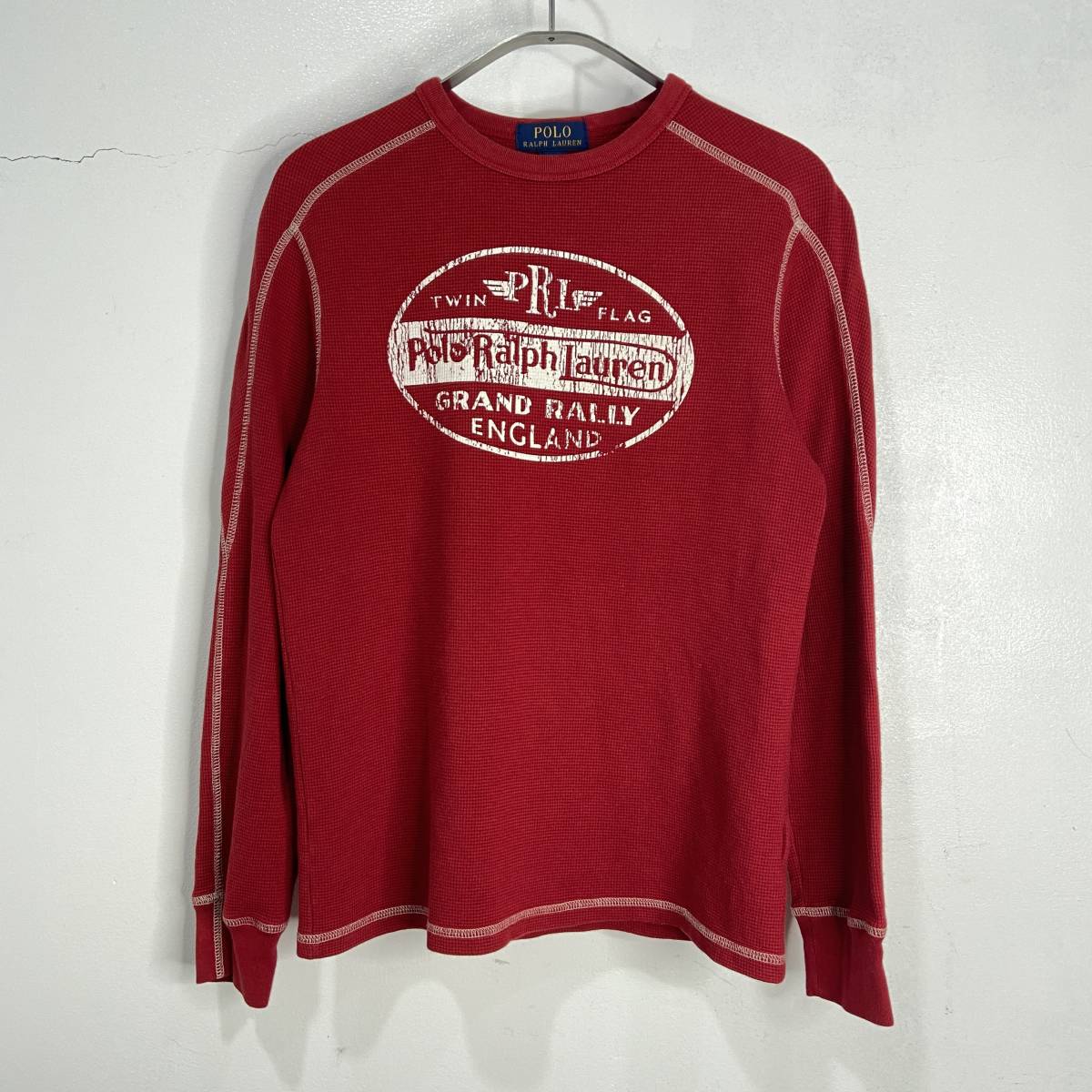 > ☆送料無料☆Ralph Lauren☆キッズ☆ビンテージ加工プリント長袖サーマルカットソー☆赤☆L(14−16)☆E23