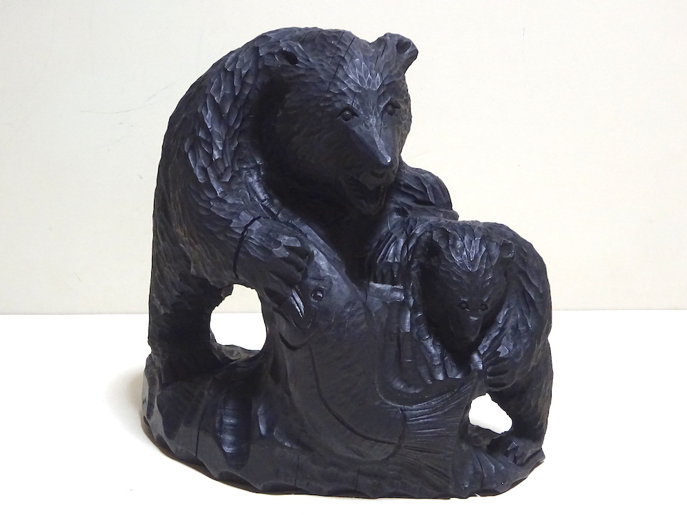 - ■即決■ 木彫り 熊 親子 魚 クマ くま 置物 床の間 インテリア アンティーク レトロ