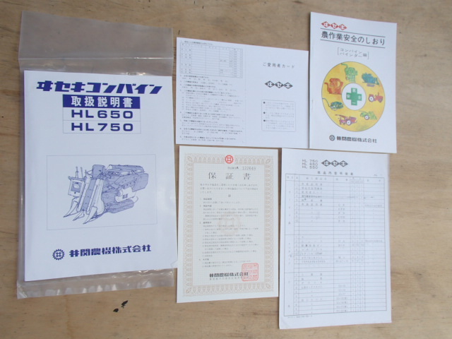 - 未使用説明書ほか書類一式!!(井関ISEKI、コンバイン、HL650、HL750)