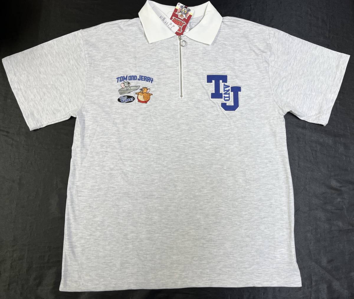 - 即決◆トムとジェリー◆半袖ポロシャツ【L】新品タグ付き ハーフジップタイプ レディース 刺繍 薄グレー 婦人 アメコミ◆