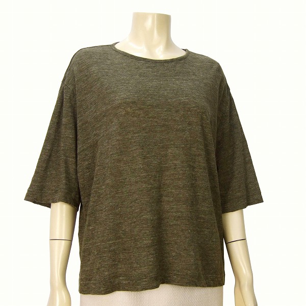 - H 美品★Y'S ワイズ ヨウジヤマモト★麻(リネン)100%生地*上品5分袖カットソー*2表記★11~13号*L~XL(2L)*40~42相当