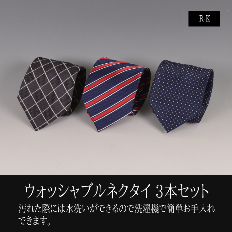 - 送料無料!!ウォッシャブル ネクタイ 3本セット□tie-3ps-R-K□新品 ドット ストライプ チェック 大剣8,5cm 洗える おすすめ 紳士 メンズ Y1