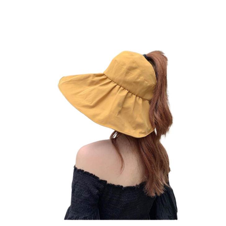 - 新品●送料無料●レディース 帽子 つば広 おおつば日よけ 折り畳みハット 紫外線95%カット 紐付き★イエロー