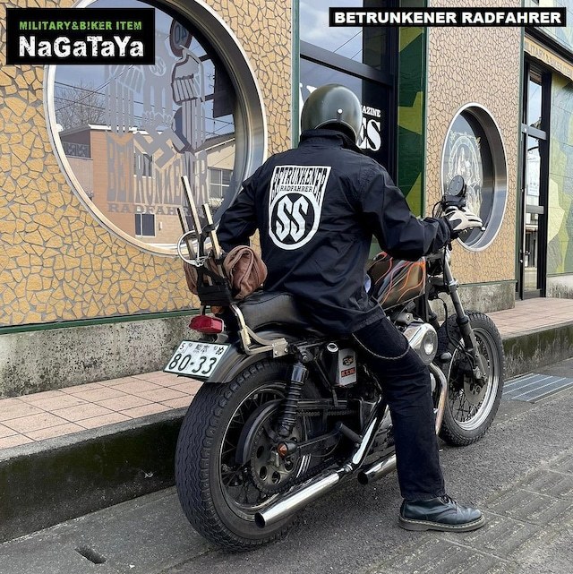 > BETRUNKENER RADFAHRER ベェトォンナ ラドファ エンブレム コーチジャケット ブラック×ホワイト Mサイズ BIKER モーターサイクル