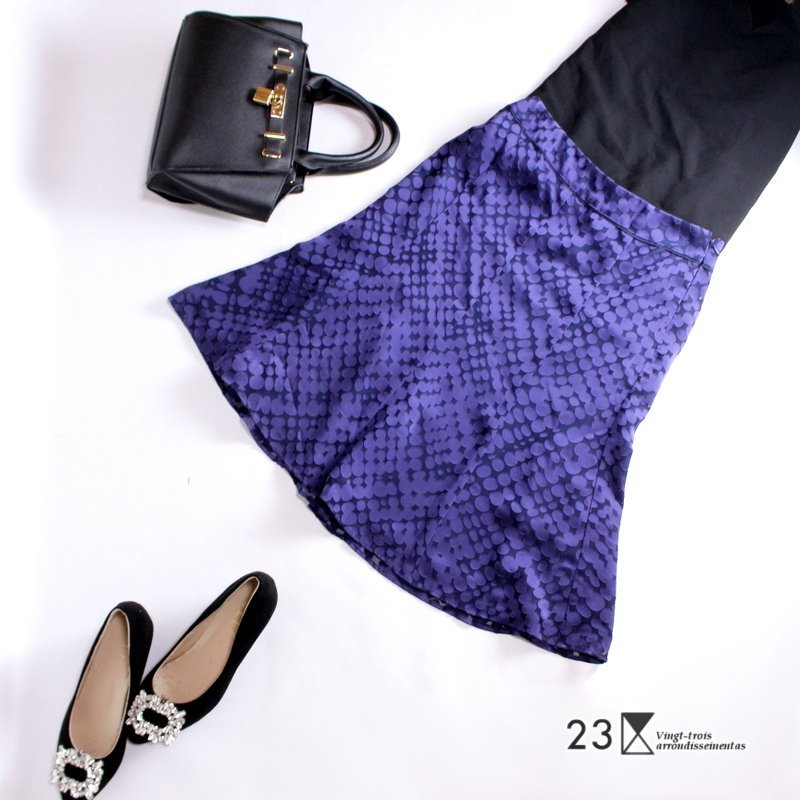 > 美品 23区 株) オンワード樫山 ■ 春 夏 凸凹 ドット シフォンスカート フレアスカート 38 9号 ネイビー 紺 パープル 紫 サフォーマル