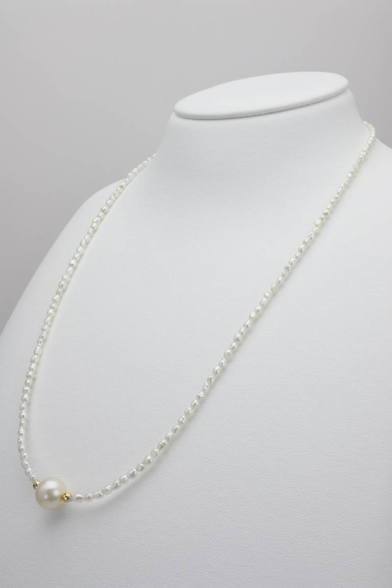 > 日本製 ☆ K18留金 K18ボール 淡水 南洋真珠 ネックレス 長さ:45cm 最大玉10mm 最小玉 2mm 5g 未使用保管品