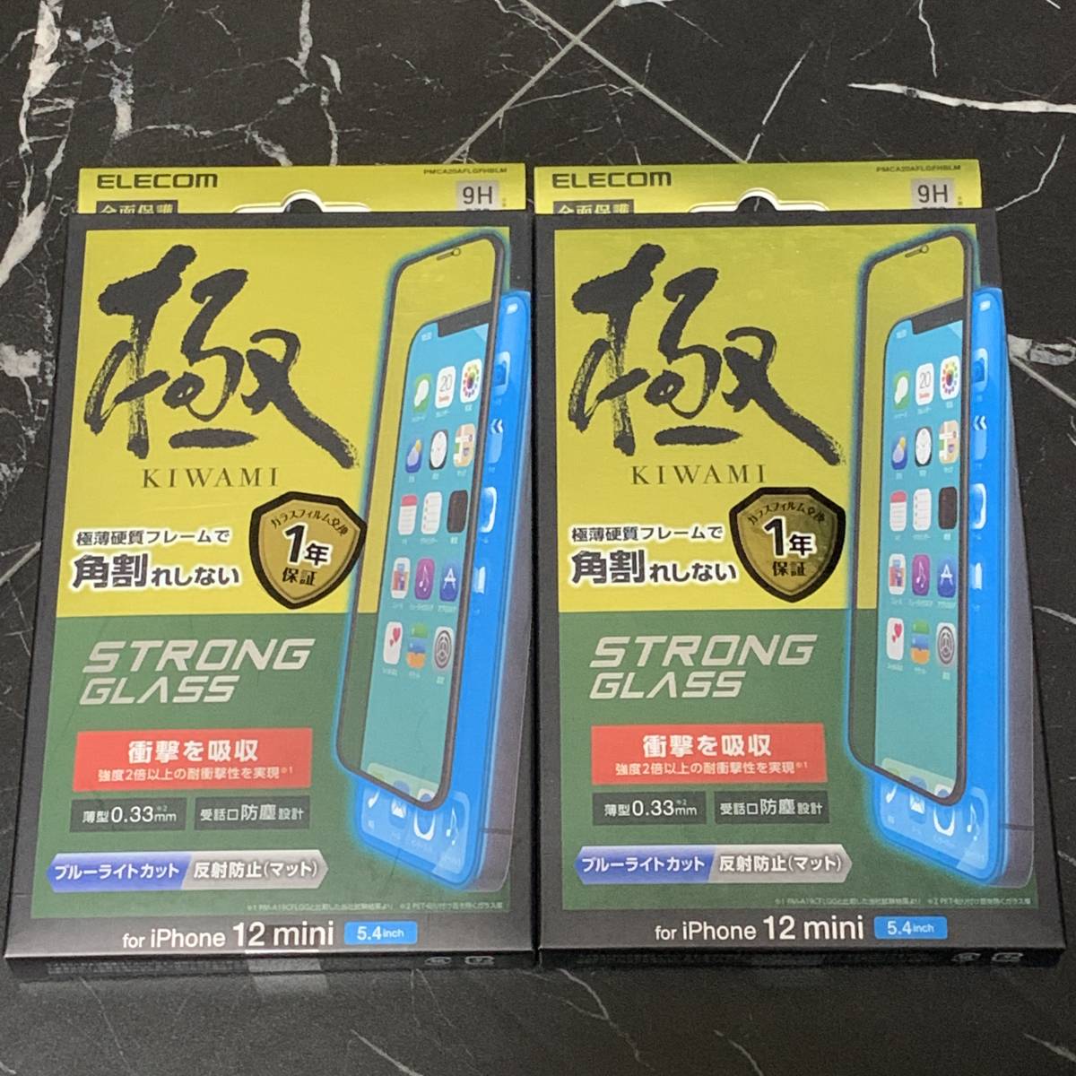 - 新品・送料無料■エレコム・ELECOM■iPhone 12 mini 極 全面保護 超強化ガラスフィルム 9H 反射防止 マット ブルーライトカット■2個セット