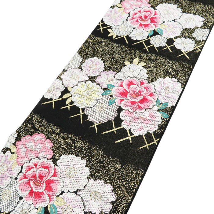 - 【FINAL PRICE】 ★きもの北條★ 振袖用 花模様 金通し リサイクル 着物 成人式 振袖 黒 袋帯 A520-4 【中古】