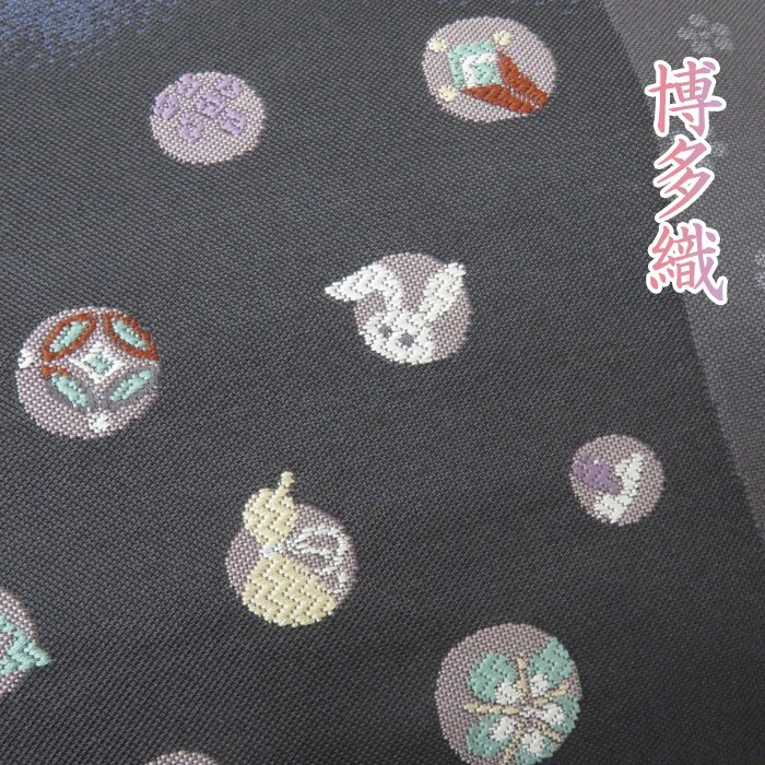 - ★きもの北條★ 特選 博多織 星梅鉢文様 全通 モダンで愛らしい逸品 鼠色 袋帯 A748-10 【中古】