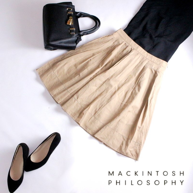 - 美品 マッキントッシュ フィロソフィー MACKINTOSH PHILOSOPHY 春 夏 膝下丈 オーガンジー ふんわり 透け フレアスカート 36 7号 ベージュ