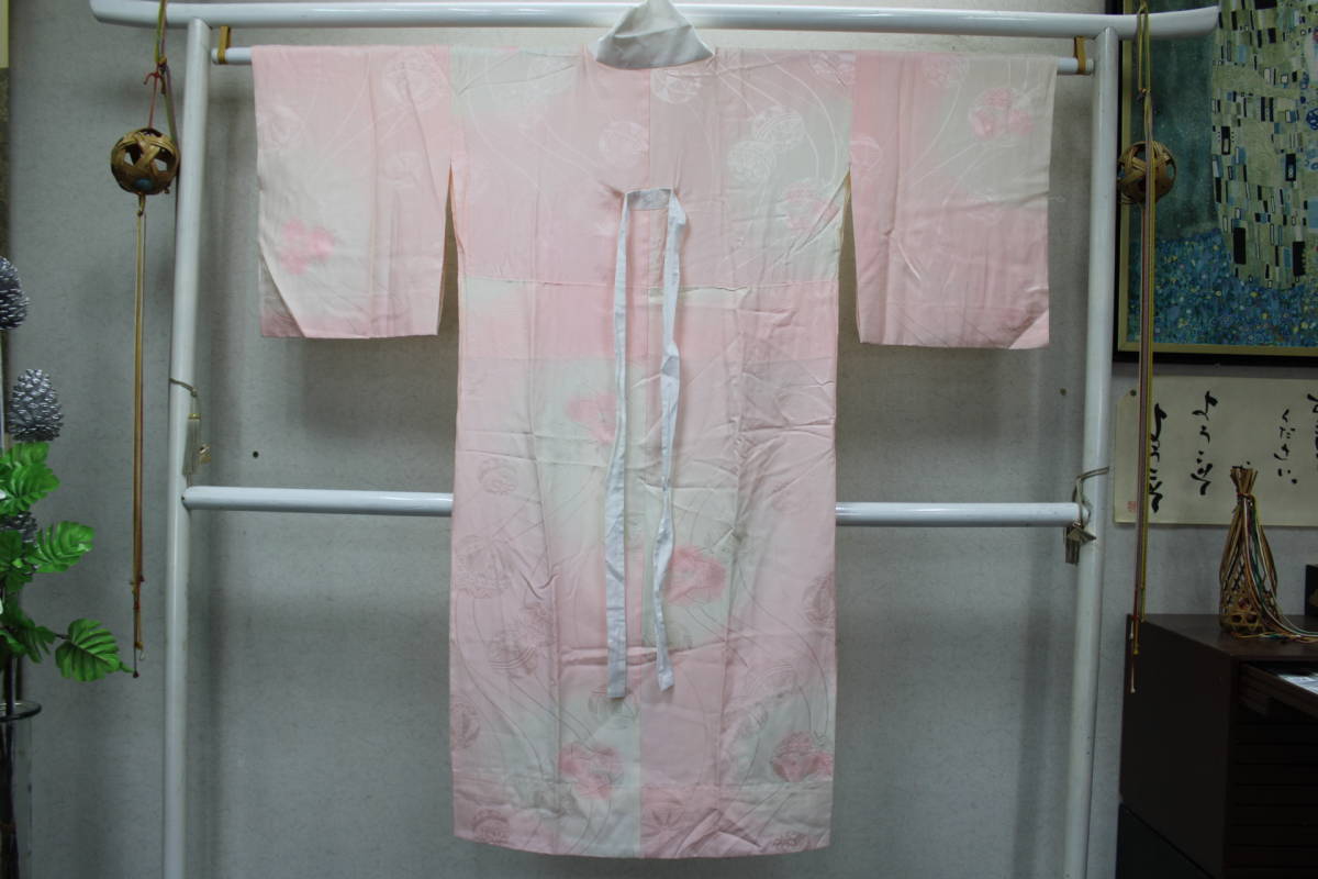 > きもの今昔5174 長襦袢 正絹綸子地 広衿袖無双身頃単衣 後2巾腰から下居敷当て付き仕立 身丈126cm
