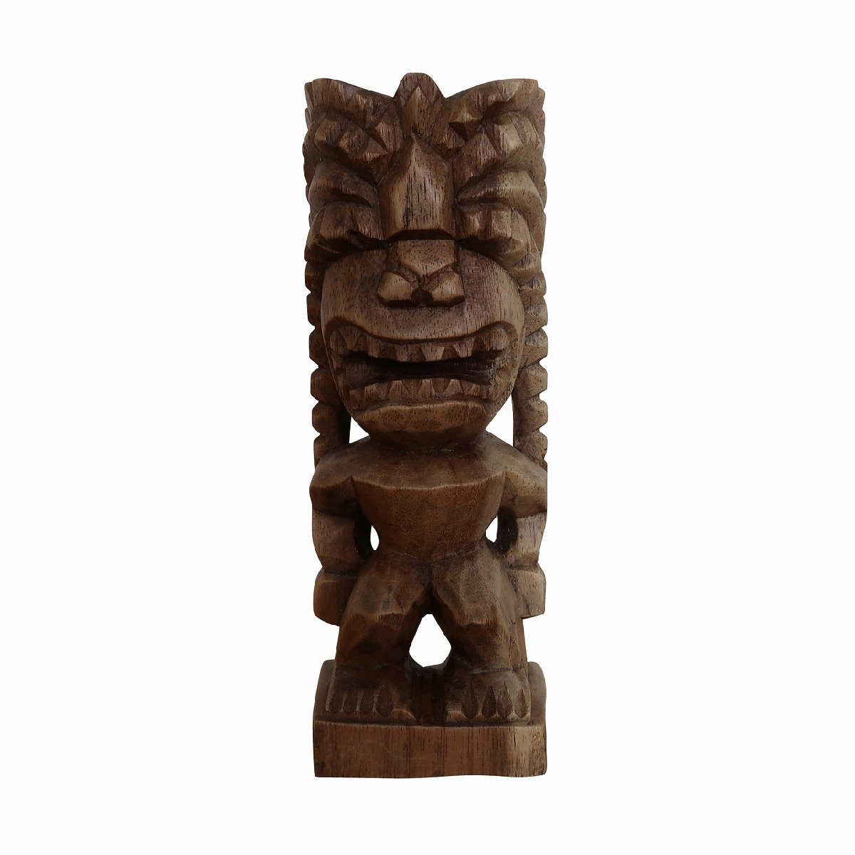 - ティキの木彫り 戦いの神 ティキ クー TIKI KU 20cm 木製 スワール無垢材【ハワイアン雑貨 ティキの置物】YSA-350115