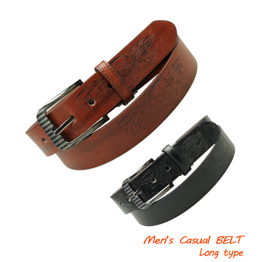 - デザイン 型押し レザー調 メンズ カジュアルベルト ブラウン 大きめサイズ 超ロング 紳士用