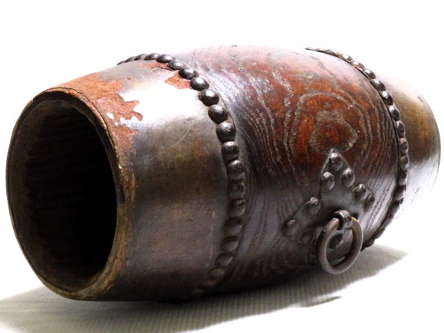- 花入 長さ約29cm 在銘 太鼓 花器 花生 時代金具