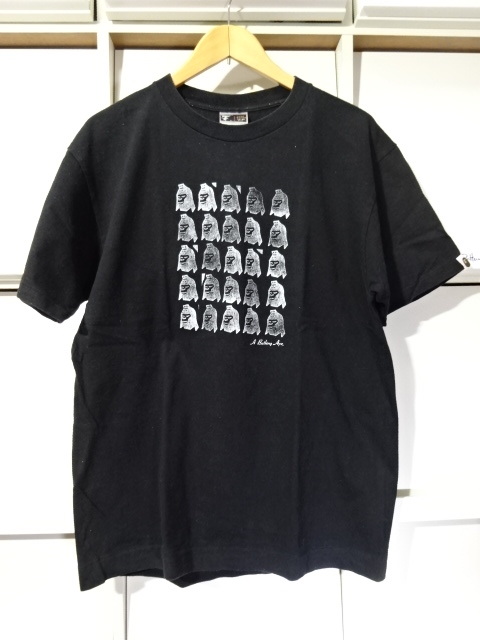 > 初期【L】APE HEAD 手刷り風プリントTシャツ A BATHING APE(ア ベイシング エイプ) ブラック NIGO アーカイブ ヴィンテージ Andy Warhol