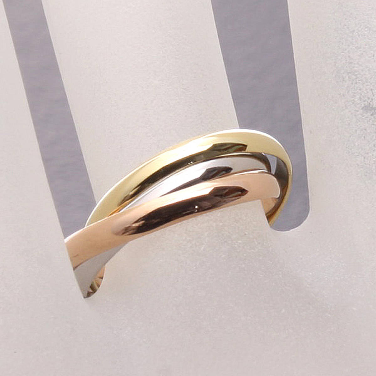 - ke9581◆磨き済 K18/Pt900リング 3カラー/三連 12号