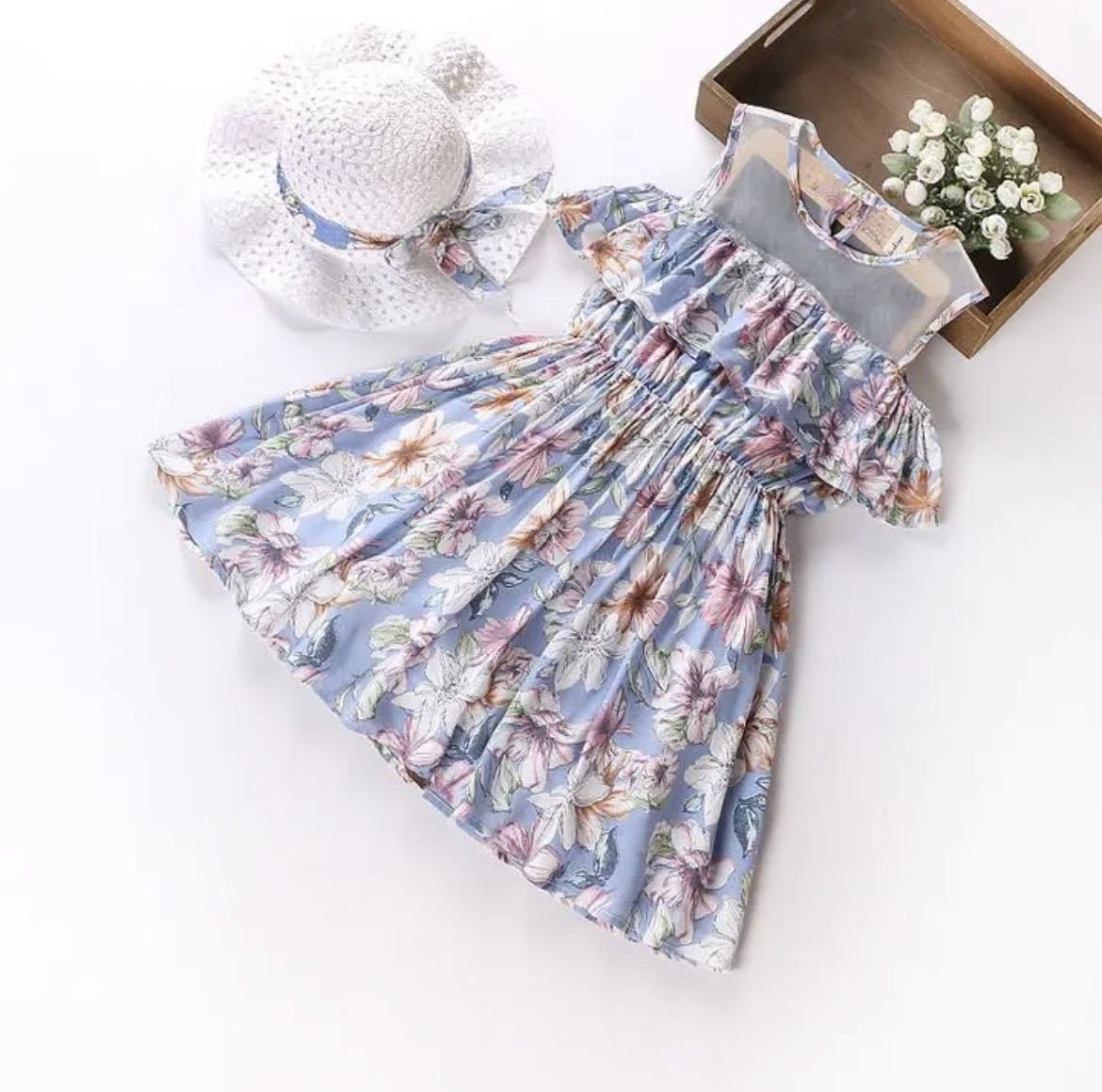 - a-65 帽子付き ノーブランド 新品 女の子 花 ライトブルー ワンピース 海 110
