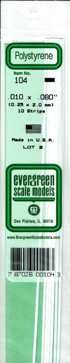 - エバーグリーン .010x.080 プラ棒 0.25x2.0mm 10本入り