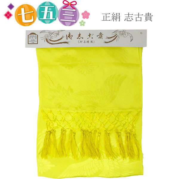 > 志古貴 しごき 正絹 黄色 イエロー 綸子 日本製 女の子 七五三 着付け 小物 753 七五三着物の小物 メール便 送料無料