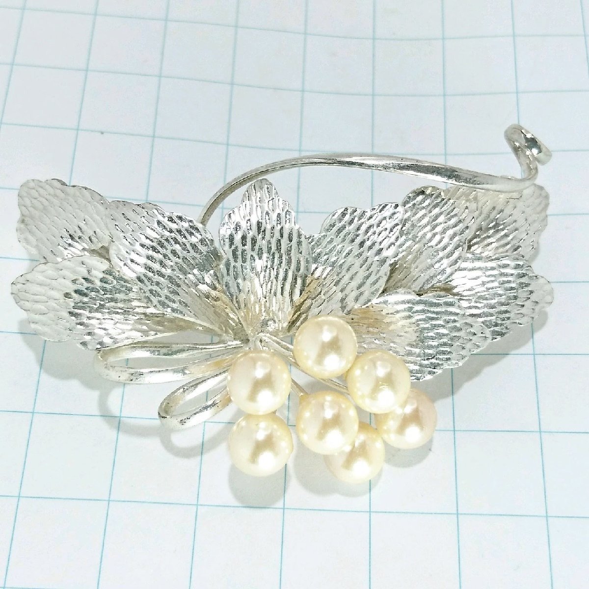 - 送料無料)ビンテージ☆パール お花モチーフ☆アンティークブローチ A17508