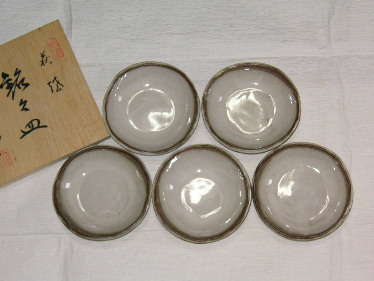 - 銘々皿 萩焼 天龍 5客 未使用 共箱(2020314)