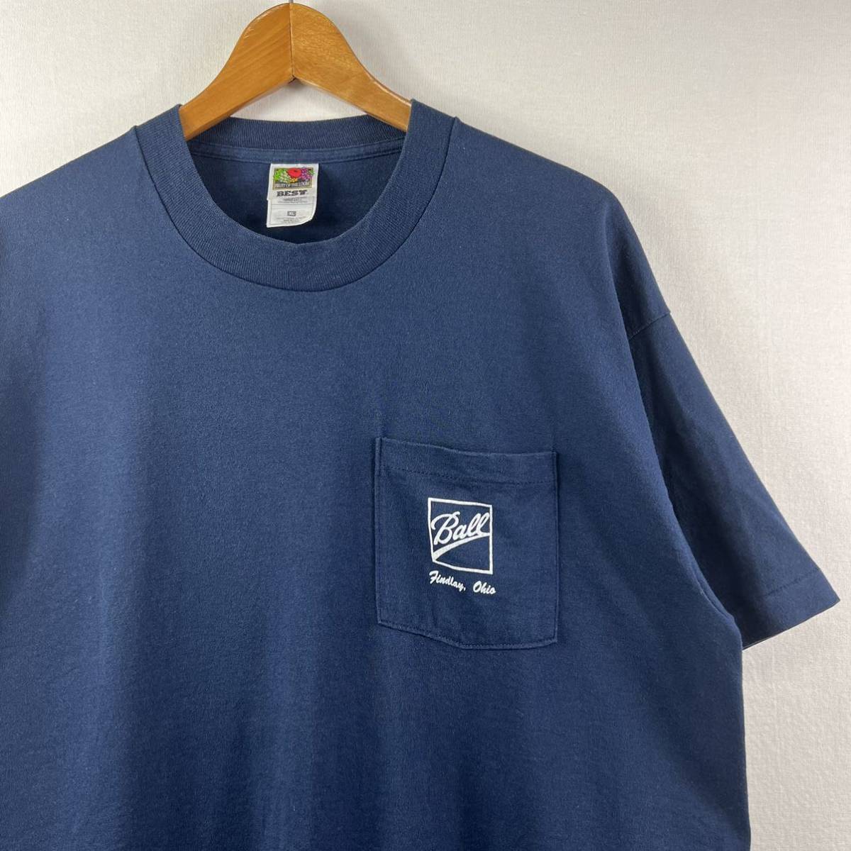 - ヴィンテージ 90s【耳付き】Ball ポケット Tシャツ XL 古着 ポケT アメカジ セルビッチ JERZZES BEST ナス紺 USA製 オーバーサイズ 赤耳