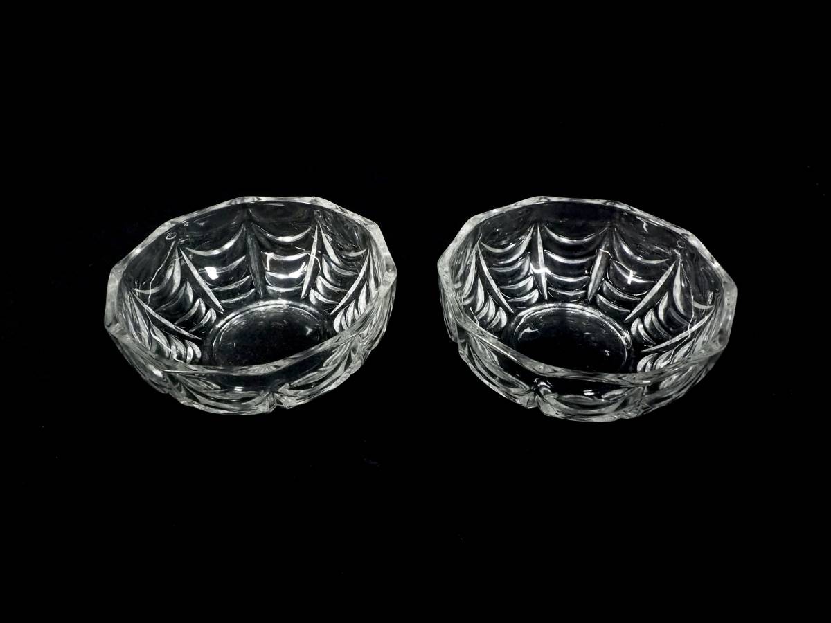 - 昭和ビンテージ ガラス小鉢2枚セット プレスガラス 1970年代 直径13cm 高さ5cm 昭和レトロ感満載の逸品 YRT506