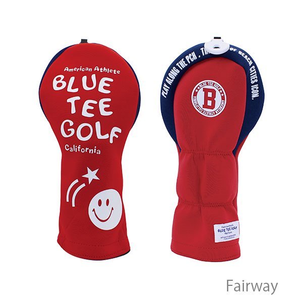 > ◎『HC34タイプ』ブルーティーゴルフ【FWレッド:ストレッチスマイル】フェアウェイ用ヘッドカバー HC-34 BLUE TEE GOLF 送料無料