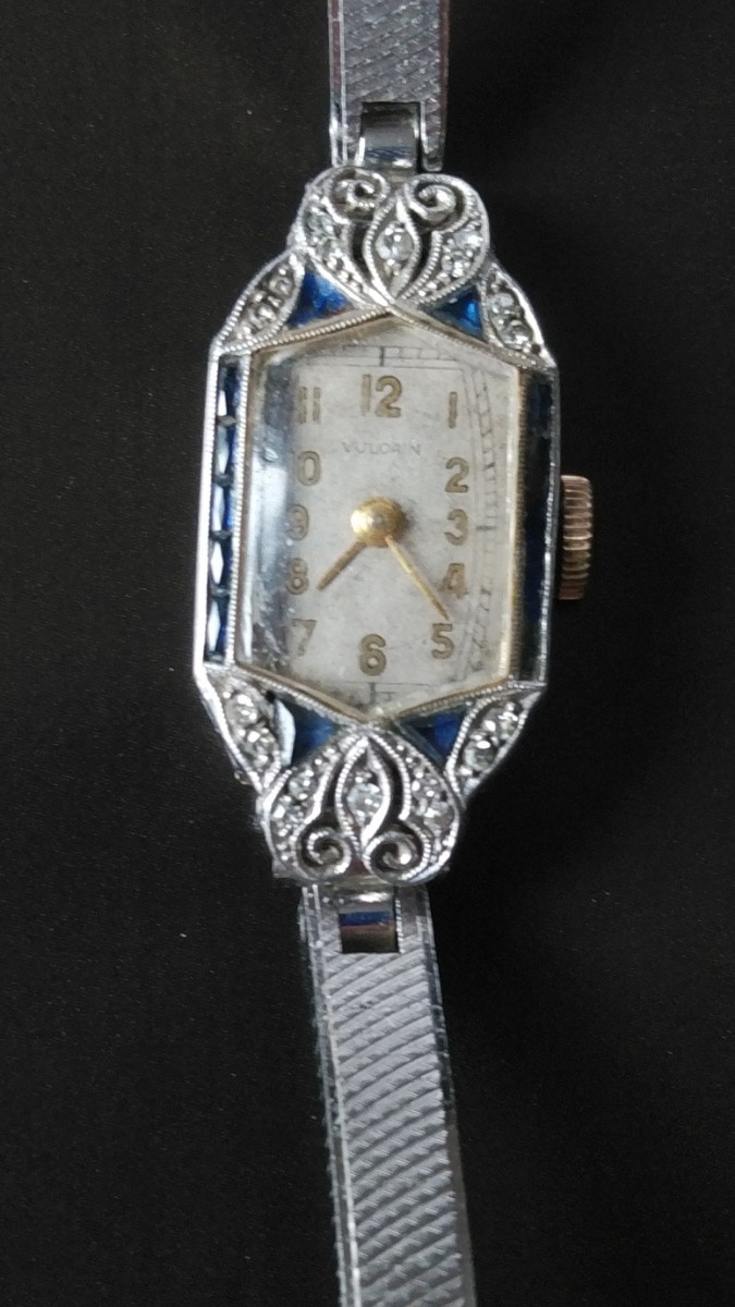 - VULCAINバルカン PTプラチナ ダイヤ サファイア レディース手巻腕時計 アンティ―ク アールデコ