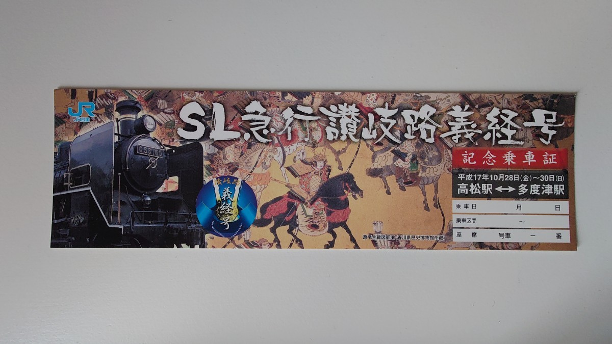 - ▲JR四国▲SL急行讃岐路義経号▲記念乗車証 平成17年