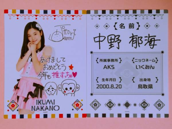 - AKB48 福袋2016 プロフィールカード 中野郁海 2枚セット