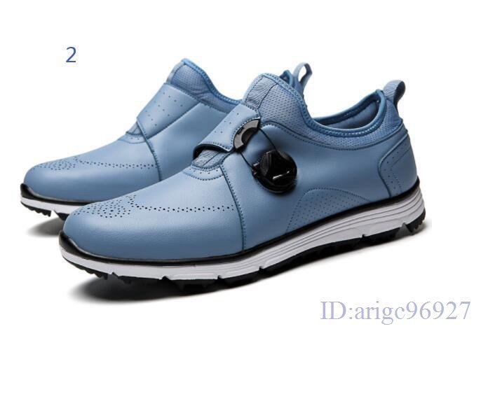 > Q786☆新品ゴルフシューズメンズスニーカー強いグリップスパイク靴ソフトスパイクアウトドアフシューズ防水防滑耐磨25~27.5cmブルー