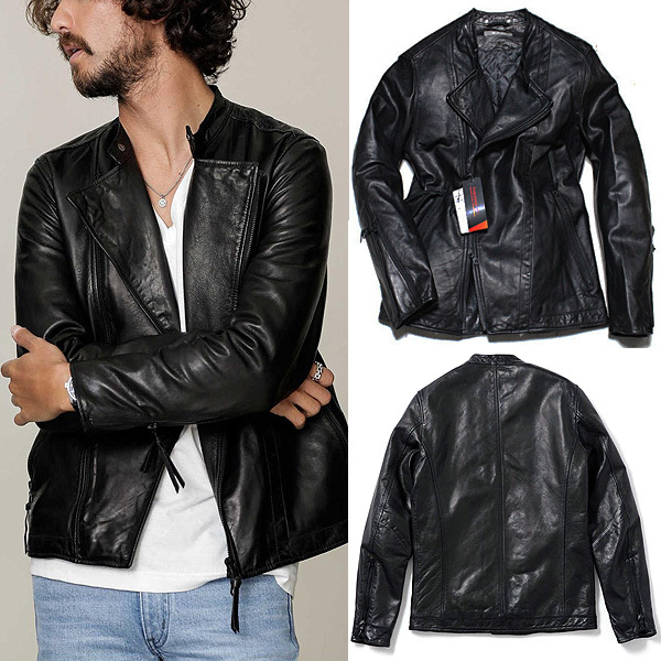 > 定価4万!新品 Sサイズ ナノユニバース THERMOLITE 中綿 オイルド ラムレザー 羊革 ダブルライダースジャケット■黒nano universeブルゾン