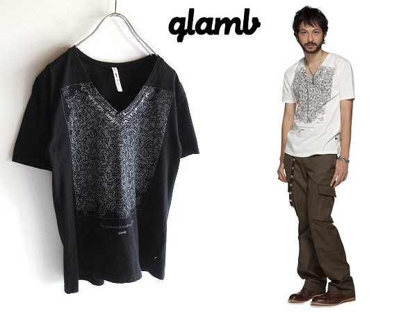 > ネコポス対応 glamb グラム Falling CS フォーリングカットソー 幾何学柄 アートプリント ロゴプリント VネックTシャツ 1 ブラック 黒