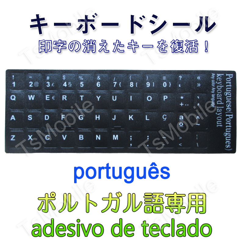 - ポルトガル語 キーボードシールPortuguese keyboardパソコン PC 鍵盤 修理 消えた文字を復活 JIS 黒地白文字 ステッカー ポイント消化